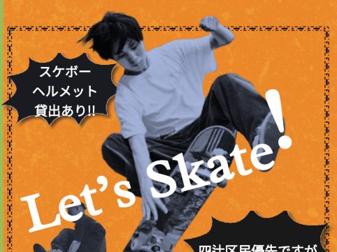 10月26日(日) 10:00~ 開催のスケボー体験教室のご案内です。 すでに申し込みの受付を開始しております(9/25~10/25まで) 四辻区民優先ではありますが、他地区の方の参加もOKです! 是...